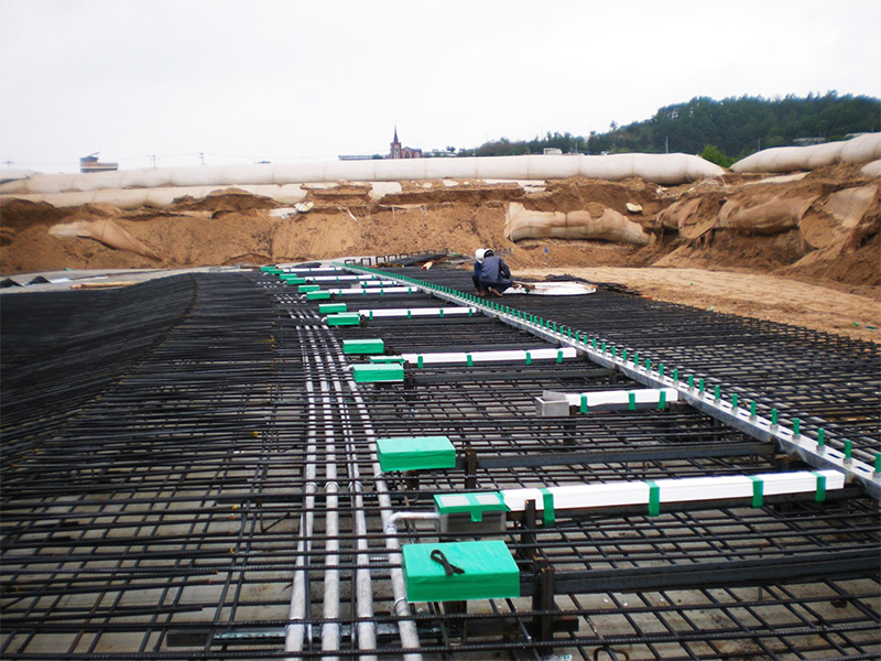充氣氣囊與支撐結(jié)構(gòu)的連接是產(chǎn)品的核心技術(shù)之一。首先將根部角鋼、主錨定螺栓、鍥部角鋼固定在河床上,調(diào)整到位后澆筑混凝土。鑄造夾具與主錨定螺栓連接,支撐在根部角鋼上,氣囊支撐在鍥部角鋼上,頂部翻轉(zhuǎn)至面板上游側(cè),依靠鑄造夾具壓緊固定,并通過鉸鏈蓋板、壓板與門體固定。